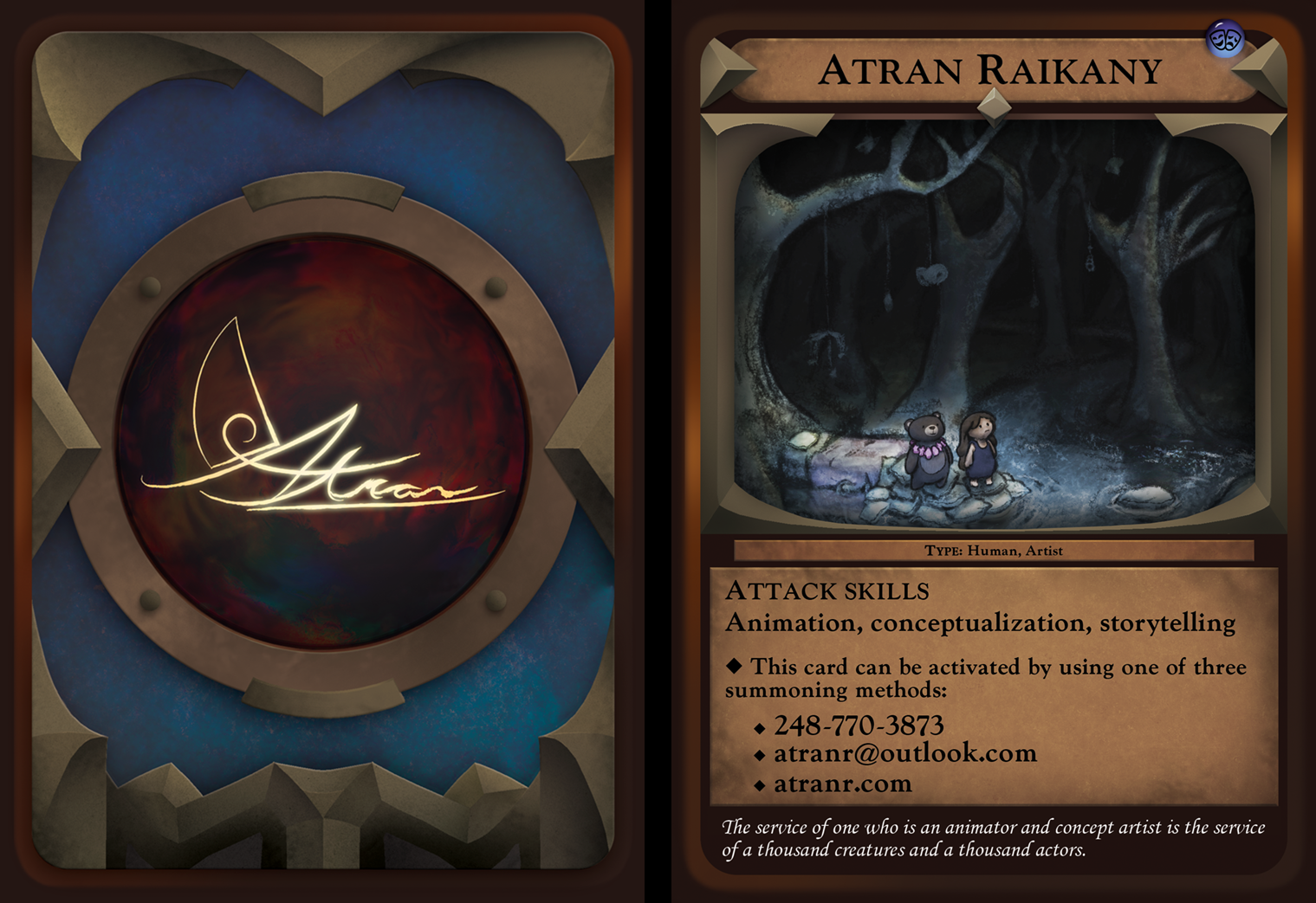 My business card, printed with different images on the fronts.